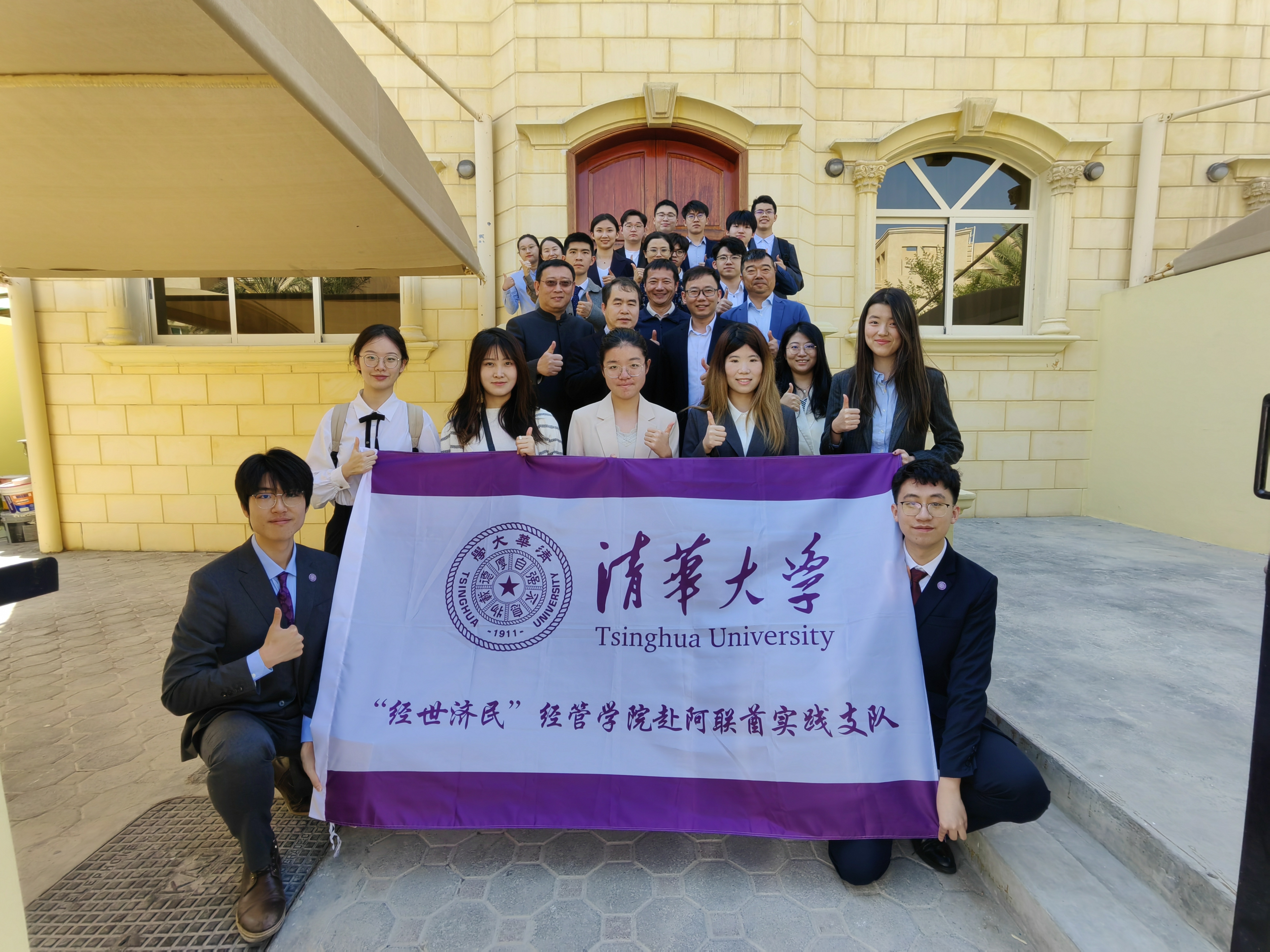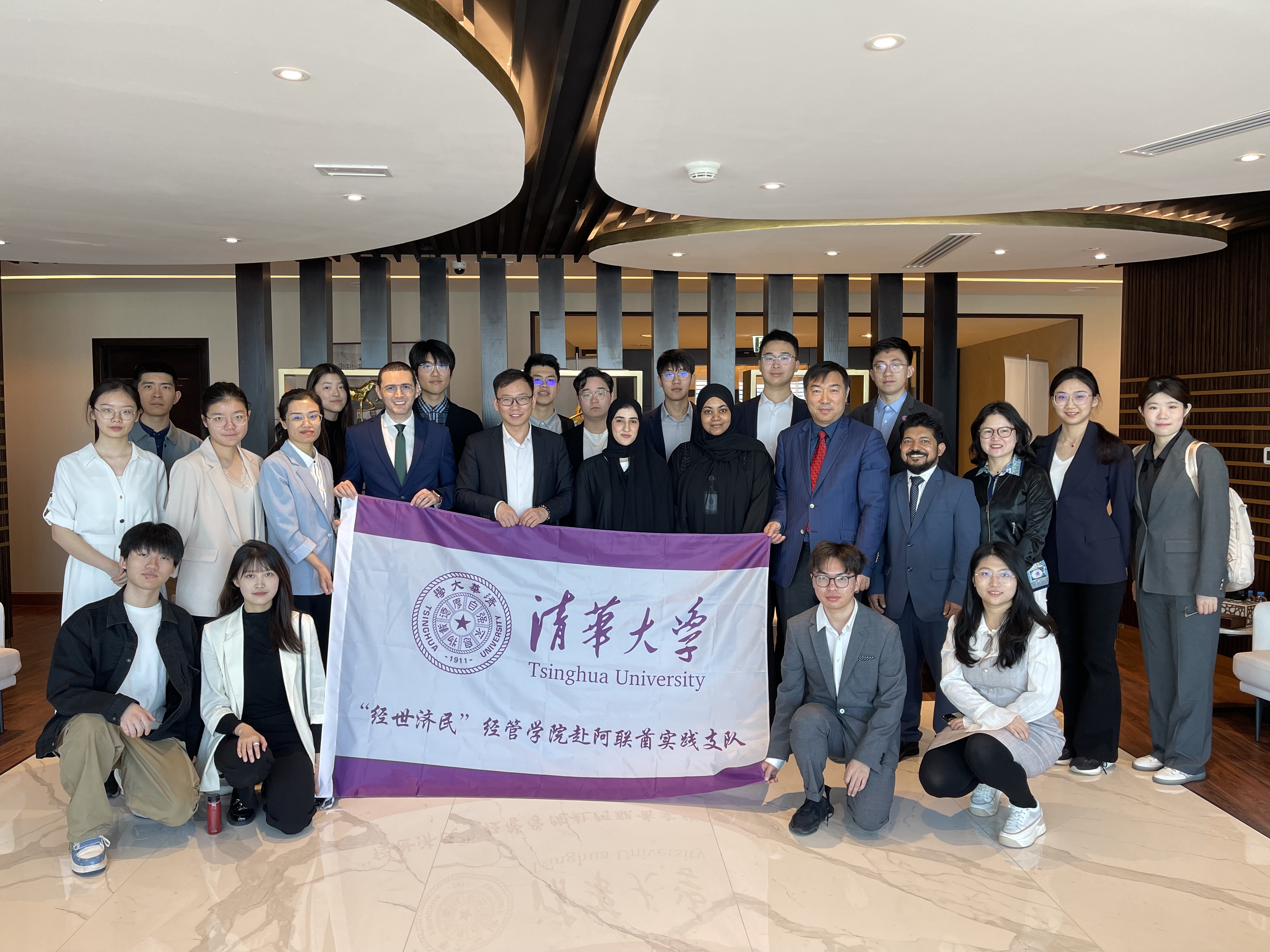 Tsinghua SEM squad poses for a group photo with diplomats from the Chinese Embassy in the UAE.