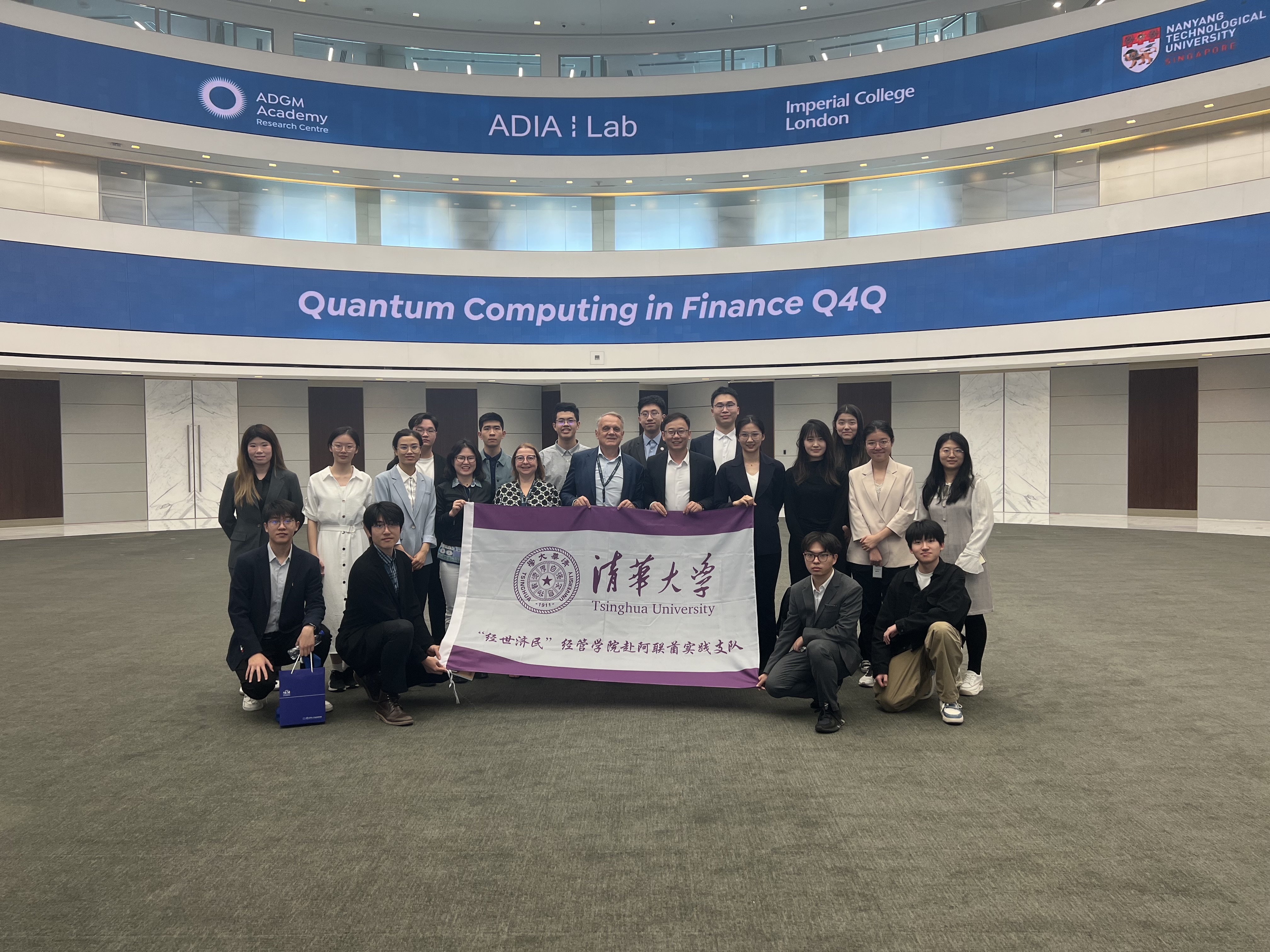 Tsinghua SEM squad poses for a group photo as they visit Abu Dhabi Global Market.