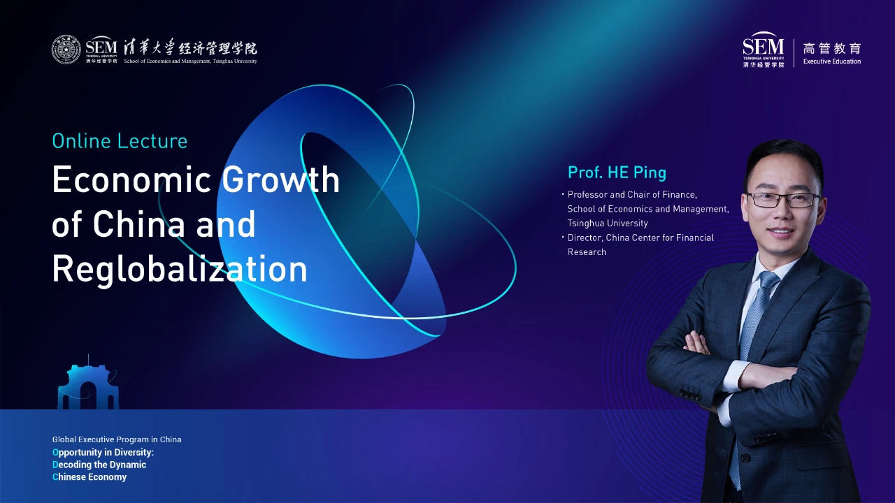 To preview its new global executive program "Opportunity in Diversity: Decoding the Dynamic Chinese Economy", Tsinghua University School of Economics and Management (Tsinghua SEM) held an online lecture by Prof. HE Ping. The public lecture entitled "Economic Growth of China and Re-globalization" was offered online via zoom on September 15.