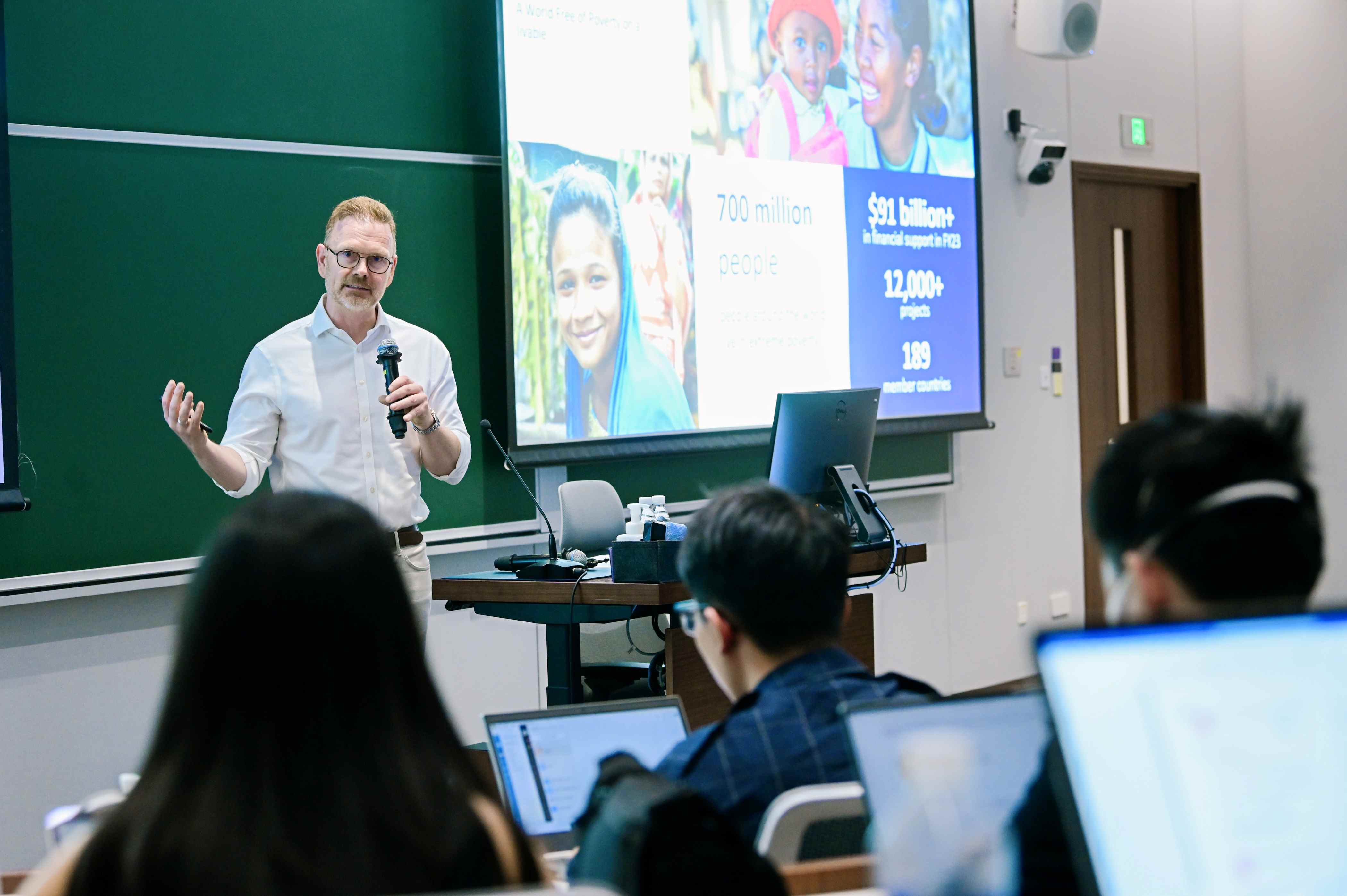 2024年5月30日,世界银行东亚太平洋地区宏观经济、贸易与投资局副局长艾卡思(Sebastian Eckardt)、世界银行中国和韩国经济学家李雨纱、世界银行集团高级人力资源业务伙伴矫英莉一行走进清华经管课堂,围绕“如何成功加入世界银行青年专业人士计划(YPP)”这一主题,与来自校内不同院系和经管学院不同教学项目的70余名学生进行了深入交流。清华经管学院院长助理迟巍主持座谈会与问答环节。