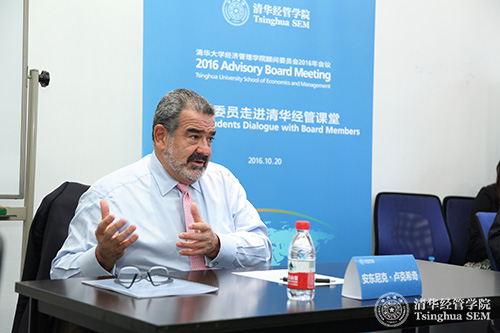 2016年10月20日,清华经管学院顾问委员会委员、智利卢克希奇集团董事长安东尼克·卢克希奇(Andrónico Luksic)走进清华经管课堂,与清华学子分享了他对中国和南美之间贸易前景的预期以及他个人的经历。